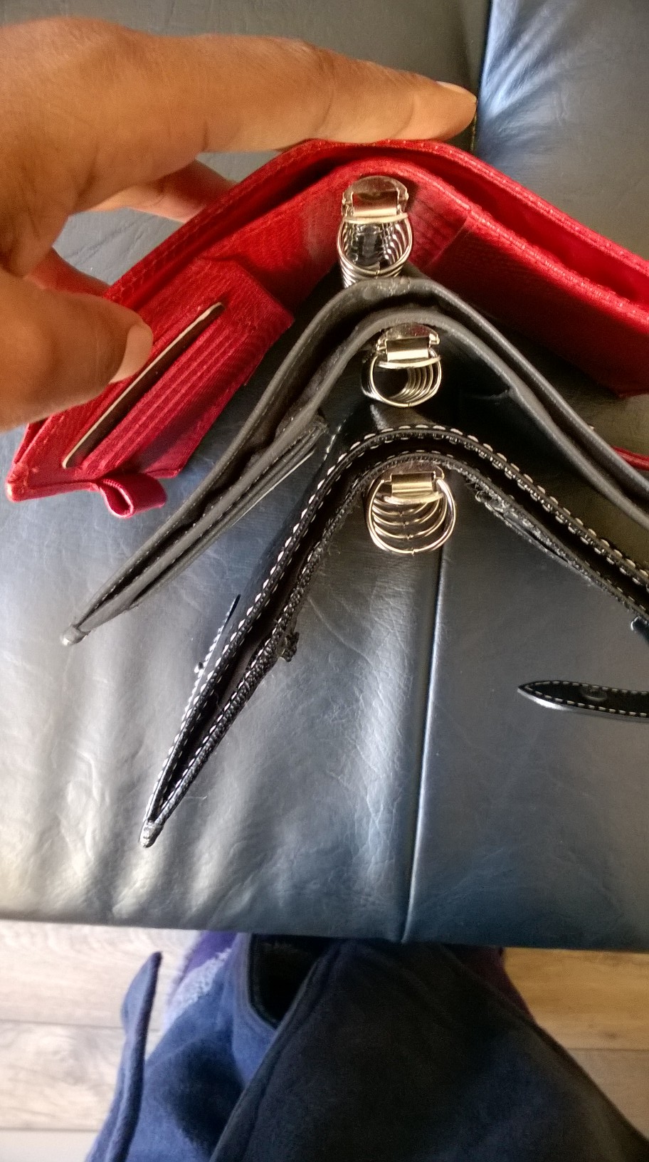Next, I want to talk about “stuffability”. It seems that the general thought is that if the leather is flexible, then you can stuff it more. I had always questioned this because I thought if the rings are the same, then it should fit the same amount of inserts no matter what the leather type is. In any case, I took it as the truth and carried on with my life ;). However, when I came to do the “stuffability” comparison, I was…surprised to see that I had been right. Below is the pocket Charleston which has a rather stiff cover. I put in the same amount of inserts as the Malden and Chameleon. You will see that about the same amount of inserts need to be removed before you see where the rings meet, compared to the Chameleon. Below I also tried to show that they have the same ring size.