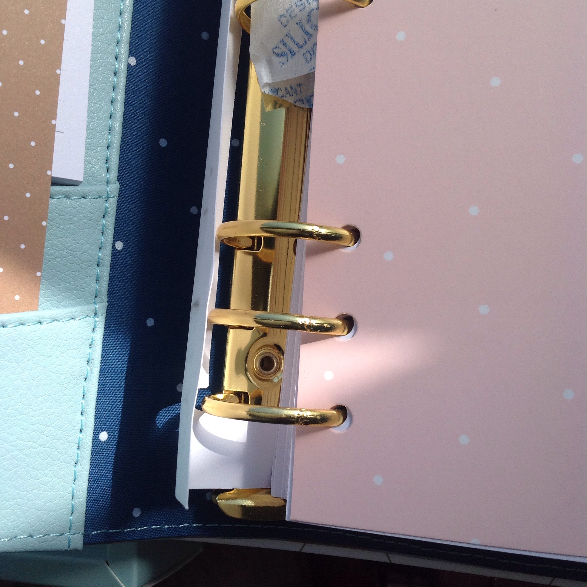 Very beautiful! This is the first Kikki K that I have ever been tempted to pay full price for. Reviews of poor quality issues of their planners have kept me away. Unfortunately the rings on these are not so great. There are slight gaps that I have tried to capture in the pictures below. Perhaps because they ship it with the inserts in the rings? I haven’t noticed that the pages catch in the rings so I will not return it. And if you look closely (in the pics above) you may also see that the stitching is not perfect on the inside. But this doesn’t bother me so much as they say that they are all handmade.
