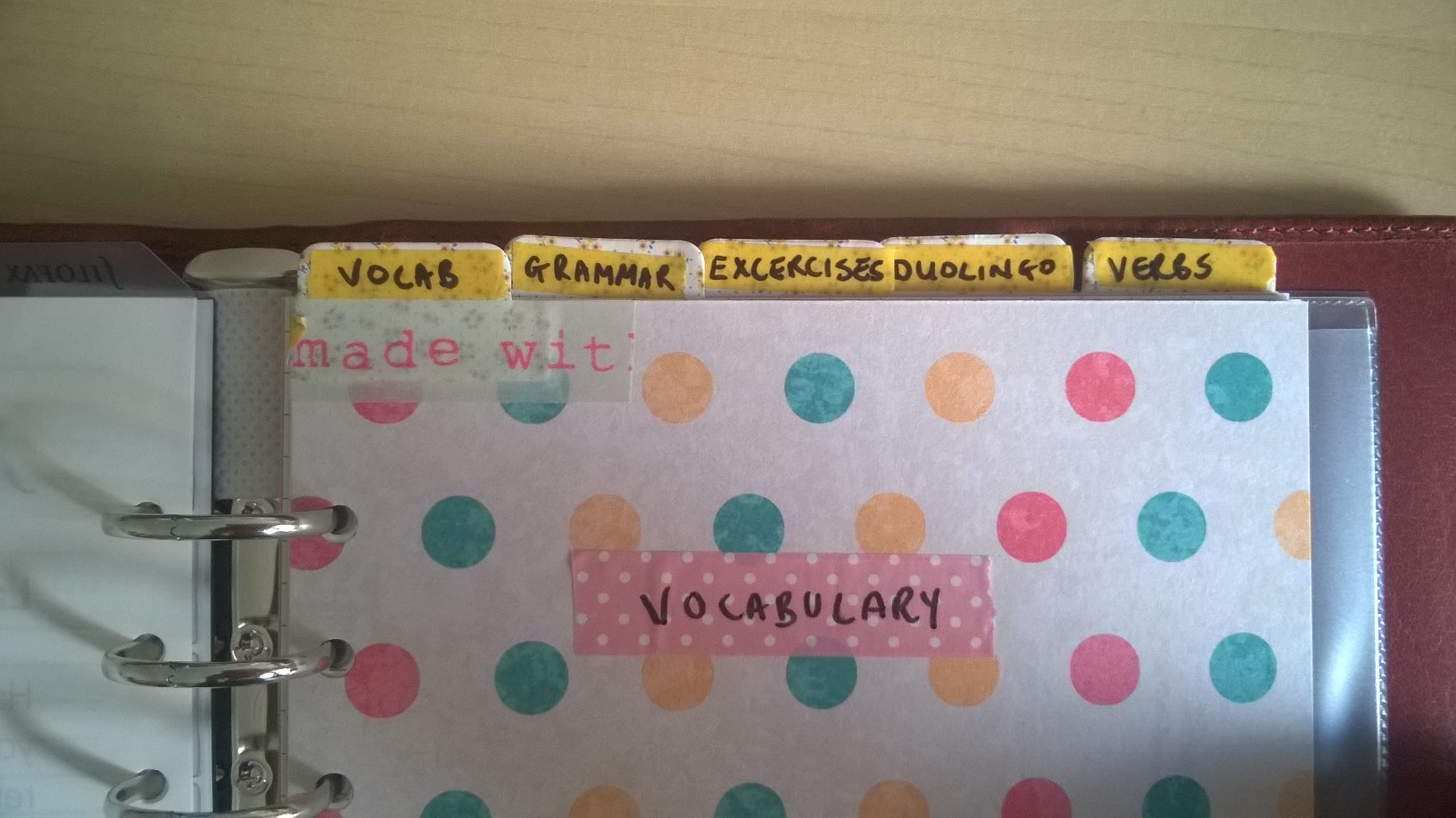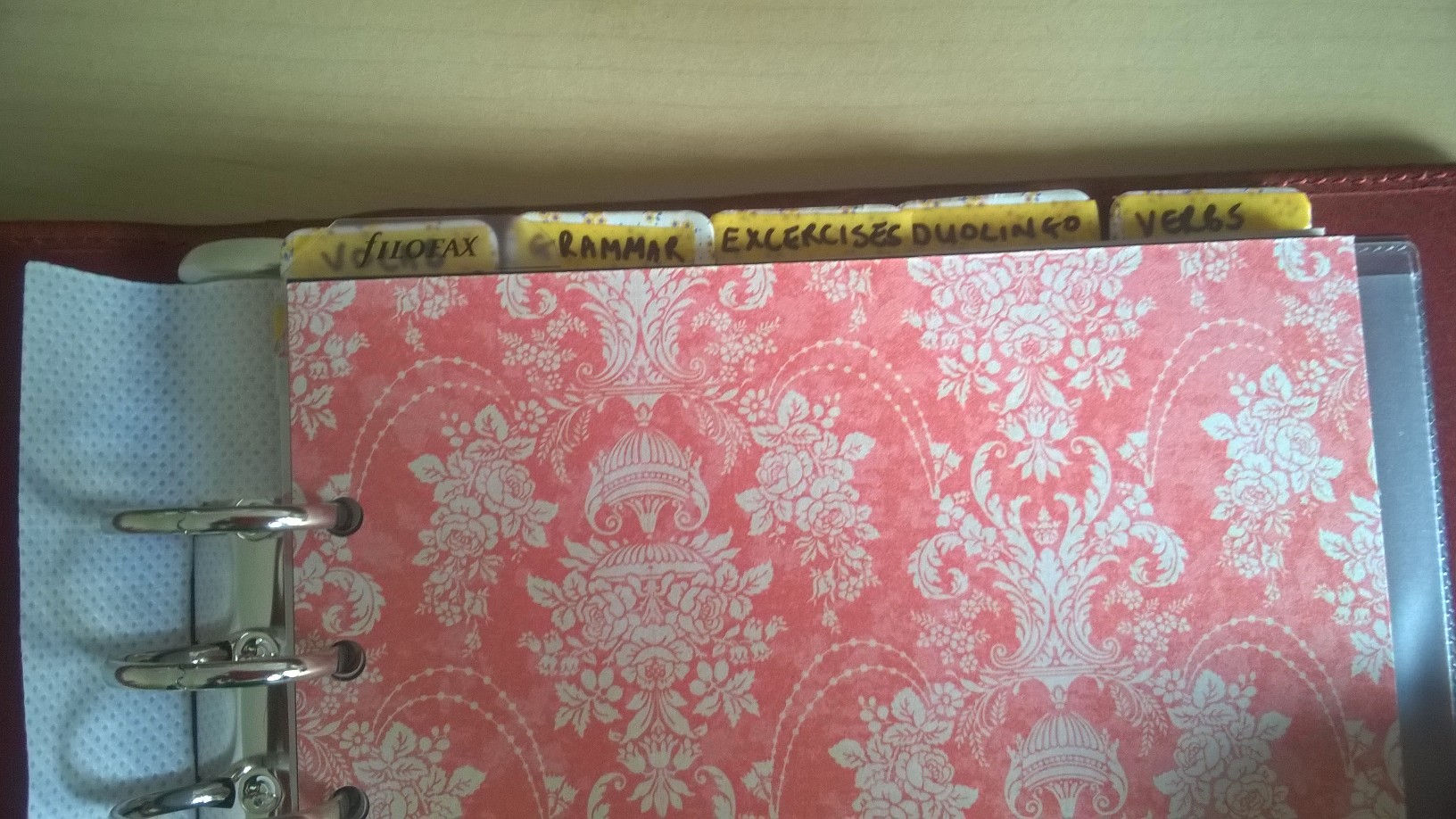I very recently started a Dutch language course. I thought I would only start sometime after the summer holidays (usually there is a long waiting list for this particular course), but I here I am! Some months ago, in the Philofaxy facebook group, someone asked for suggestions as to how to set up a filofax for language learning. Of course I took an interest as I knew I wanted to enrol in this course and use one of my A5 filofaxes to assist in learning. From the suggestions that were given, I have been able to convert my A5 Charleston (previously used as my school/master research binder) into my language filofax! ๐